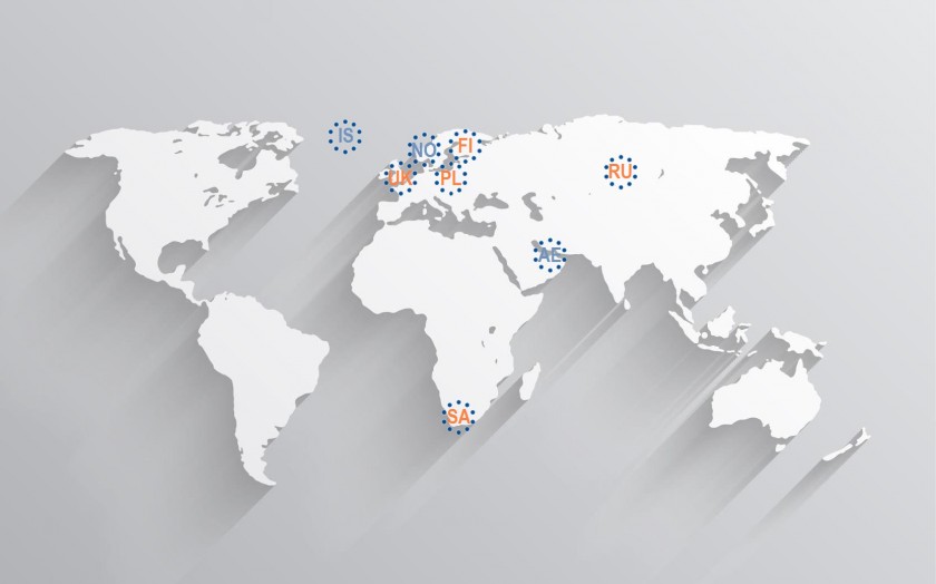 Компания Arctic Trucks в настоящий момент ведет деятельность в 8 странах мира: Исландия (IS), Норвегия (NO), Объединенные Арабские Эмираты (AE) - собственный бизнес; Россия (RU), Польша (PL), Финляндия (FI), ЮАР (SA) и Великобритания (UK) - бизнес на основе франчайзинга.